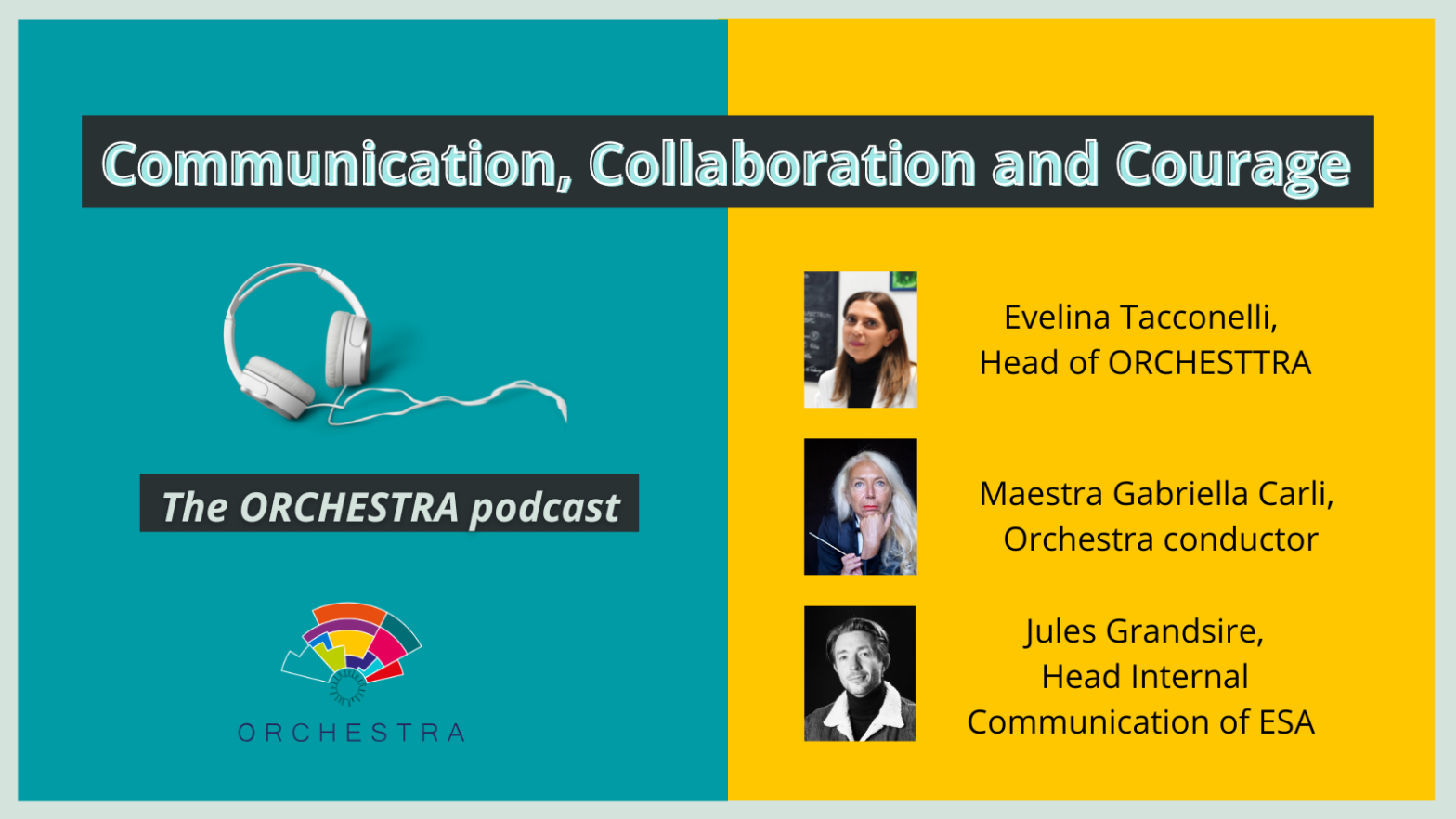 Episode 2 – “Communication, Collaboration and Courage” are prerequisite for successful teamwork. We invited three very special guests, who have extremely meaningful and interesting careers, who contribute with their personal insights to “communication, collaboration and courage”: Prof. Evelina Tacconelli, the head of ORCHESTRA, Maestra Gabriella Carli, an international conductor and concert pianist, and Jules Grandsire, Head of all Internal Communication of the European Space Agency (ESA).